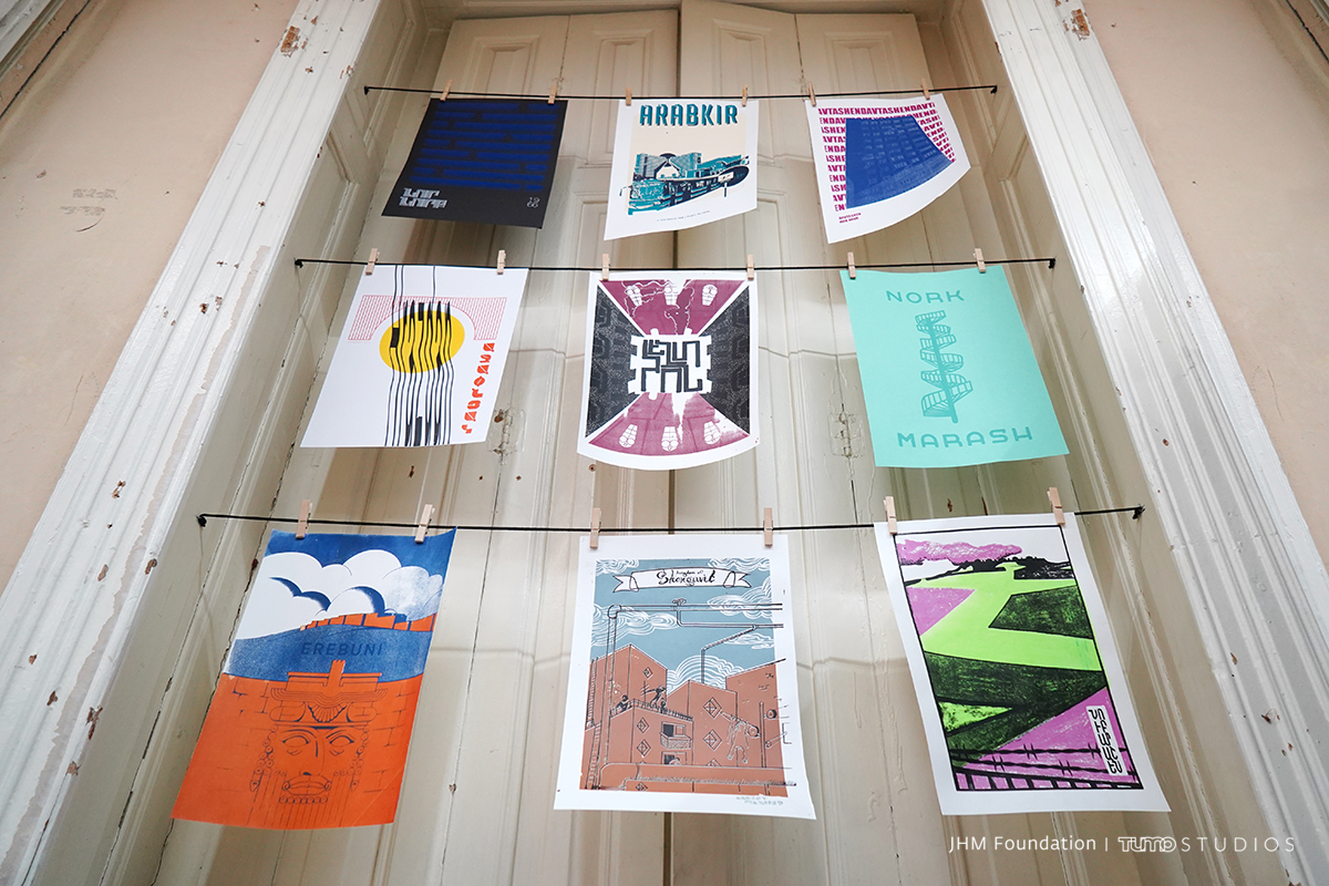 In March 2022, I travelled to Armenia to give a 2 week workshop in Poster making for the students at TUMO Studios.TUMO Studios is a free educational program for university-aged students and young professionals with a passion for craftsmanship and design, located in the center of Yerevan. I gave the students the task of creating a poster of the different districts of Yerevan, each student picked a district to create a poster for. After gathering inspiration, the students transformed their illustrations into screen printed posters, which we printed at the school.